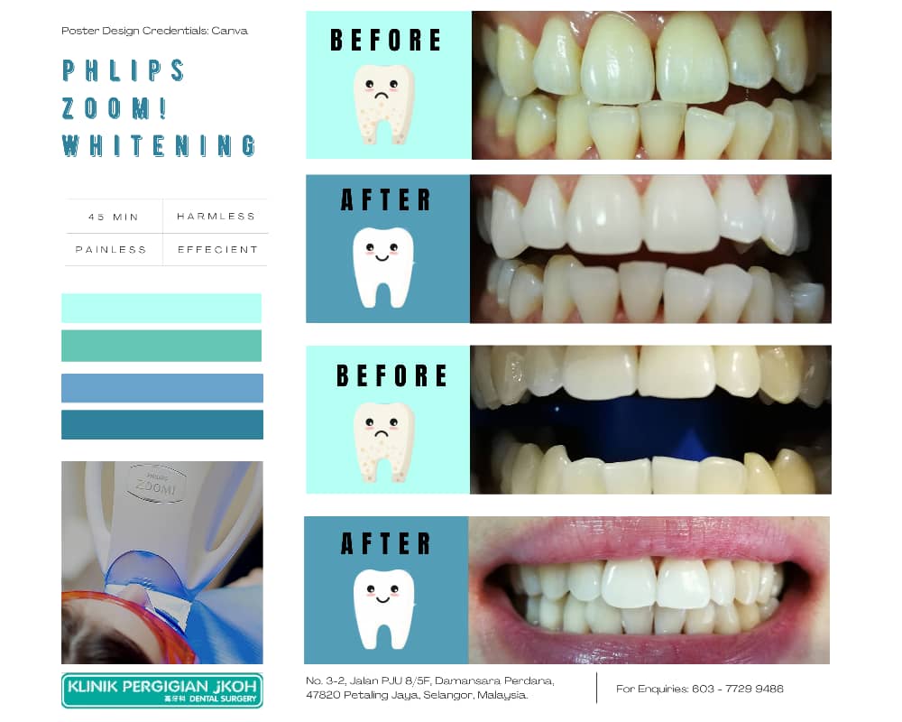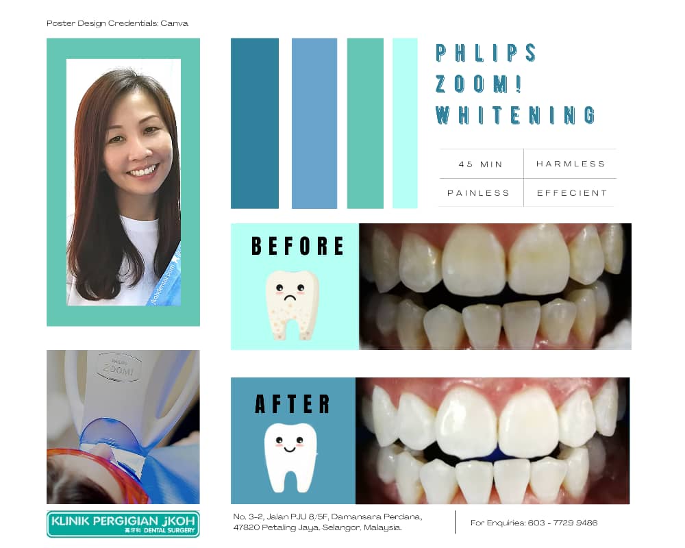 https://g.co/kgs/srVP3NI was delighted when my teeth turned out strikingly whiter than my original yellowish ones 2 & 1/2 years ago after undergoing in-office Zoom Whitening by Dr. Johnson. With regular careful maintenance by myself & in jKoh Dental, I am still satisfied with my teeth's current colour. This will be my one-stop dental clinic. Thank you for the great & friendly service!